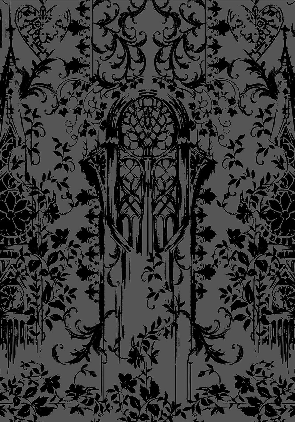Thorned Flocked Chiffon Castle Print Frill Neck Maxi Dress
