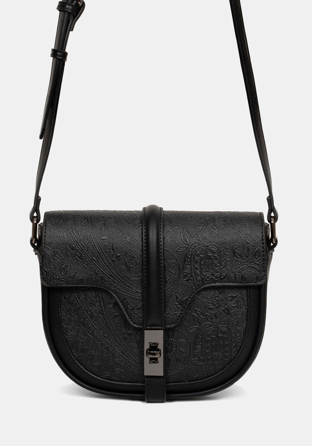 • Black Paisley Debossed PU Leather Crossbody Satchel Bag