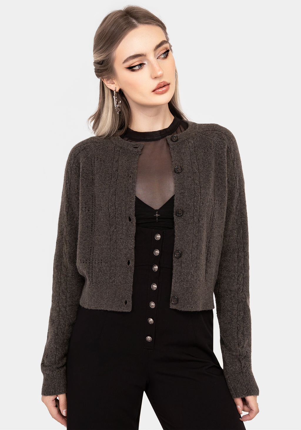 • Charcoal Pointelle Cardigan