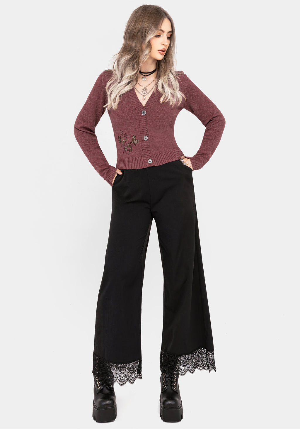 Dana Floral Moth Embroidered Cardigan - Purple