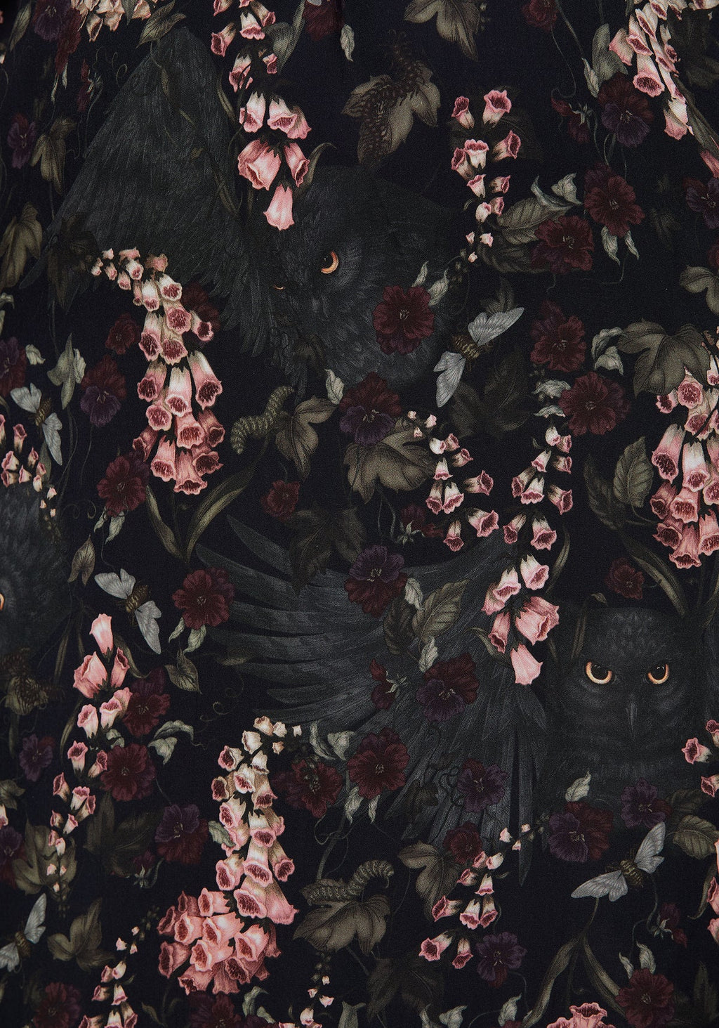 Noctua Midnight Owl Foxglove Printed Tiered Maxi Dress