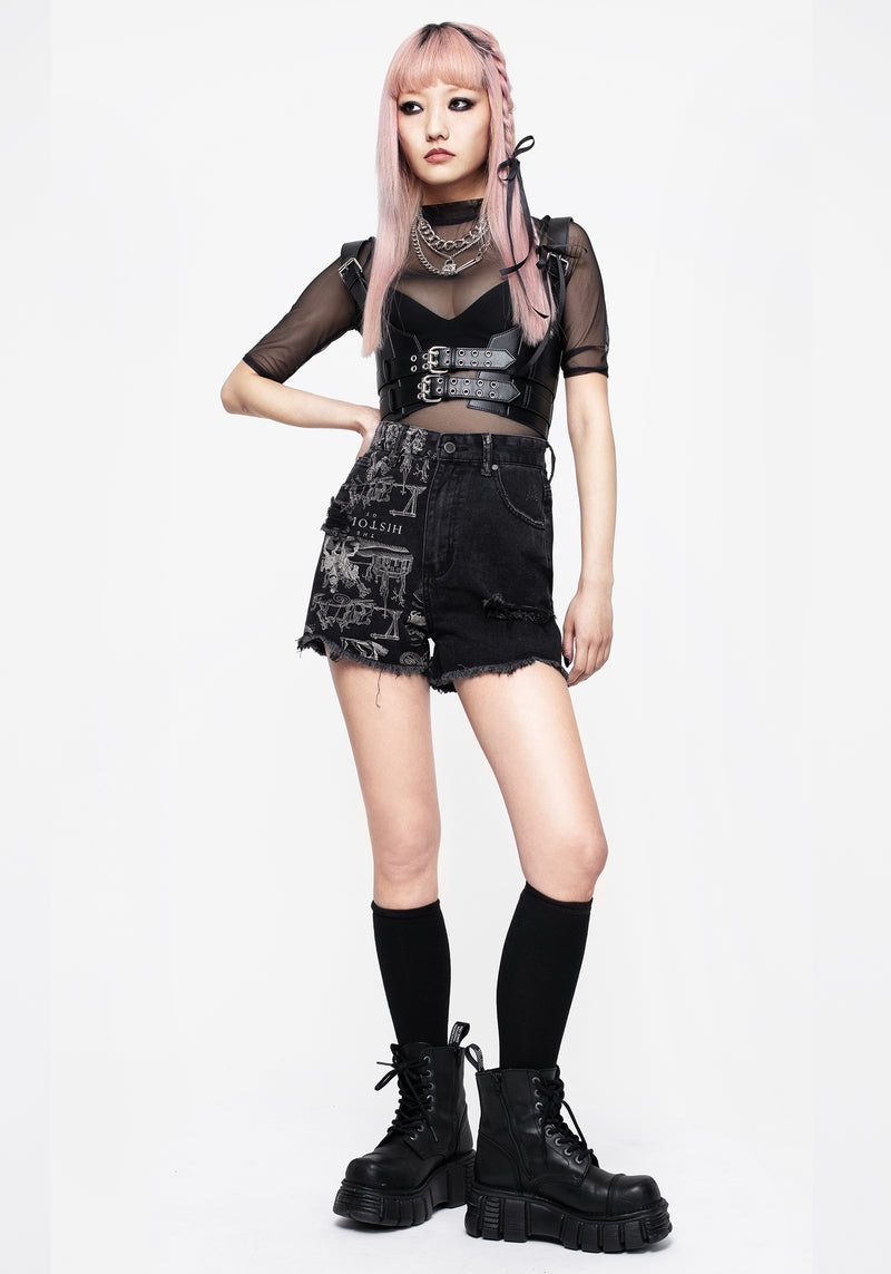 - Five pocket design with belt loops, branded gunmetal hardware, & embossed patch
