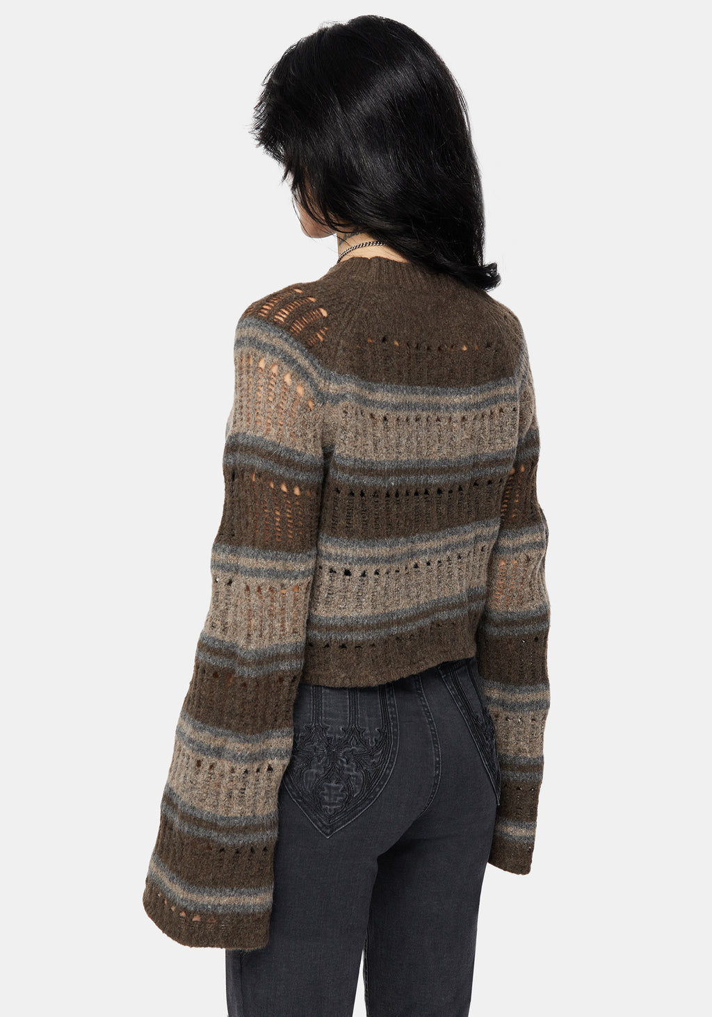 Splinter Stripe Knit Flare Sleeve Crop Jumper - Brown