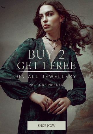 - Forest green Celtic-inspired floral embroidery wraps around sleeve cuffs