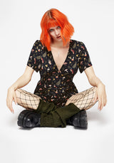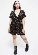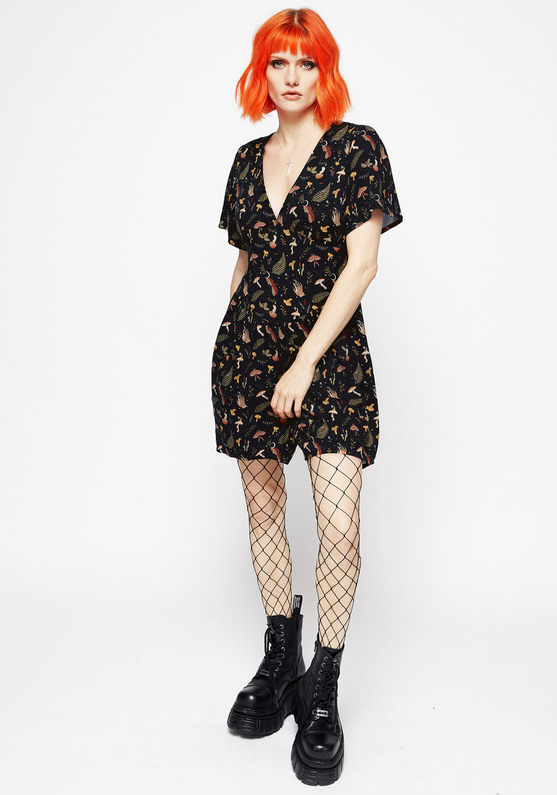 - Black occult moon & mushroom printed playsuit