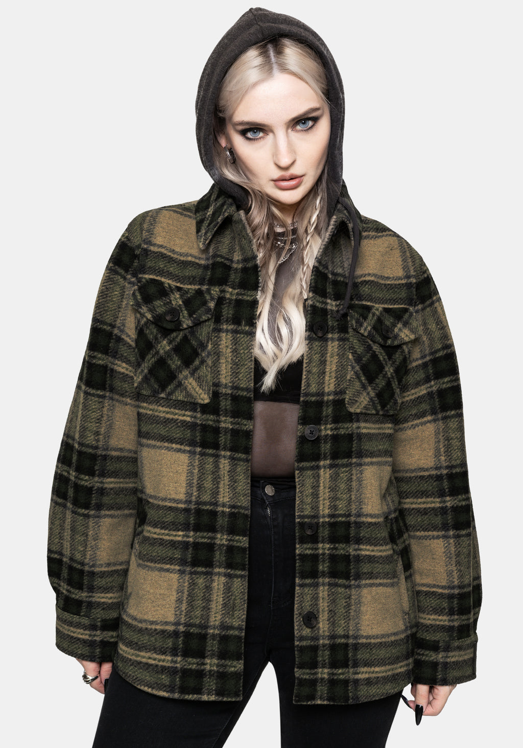 Trellis Lightweight Hooded Pocket Check Shacket - Green