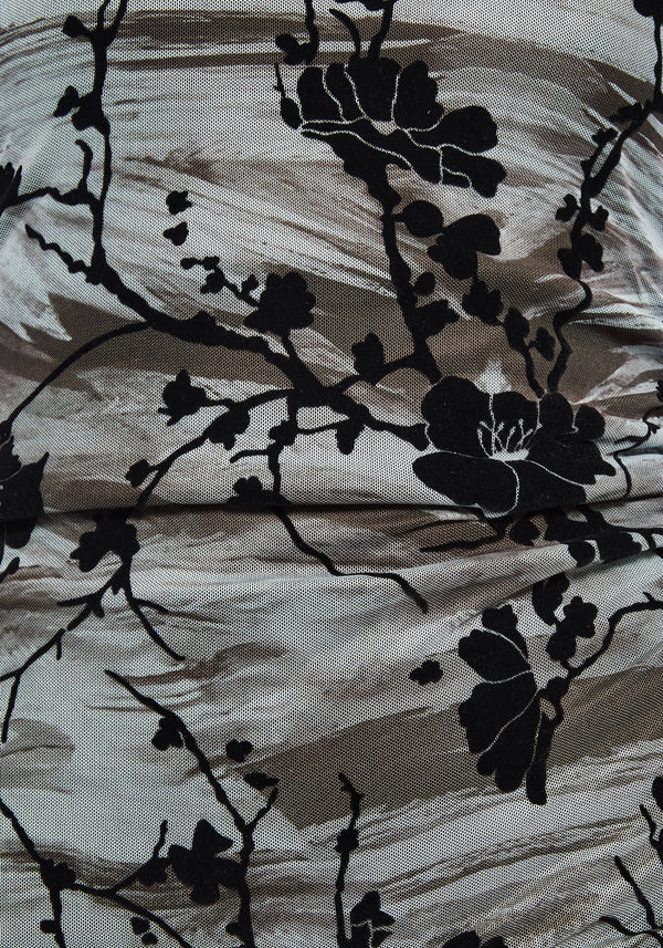 Bryn Floral Flocked Mesh Ruched Long Sleeve Midaxi DressBryn Floral Flocked Mesh Ruched Long Sleeve Midaxi Dress