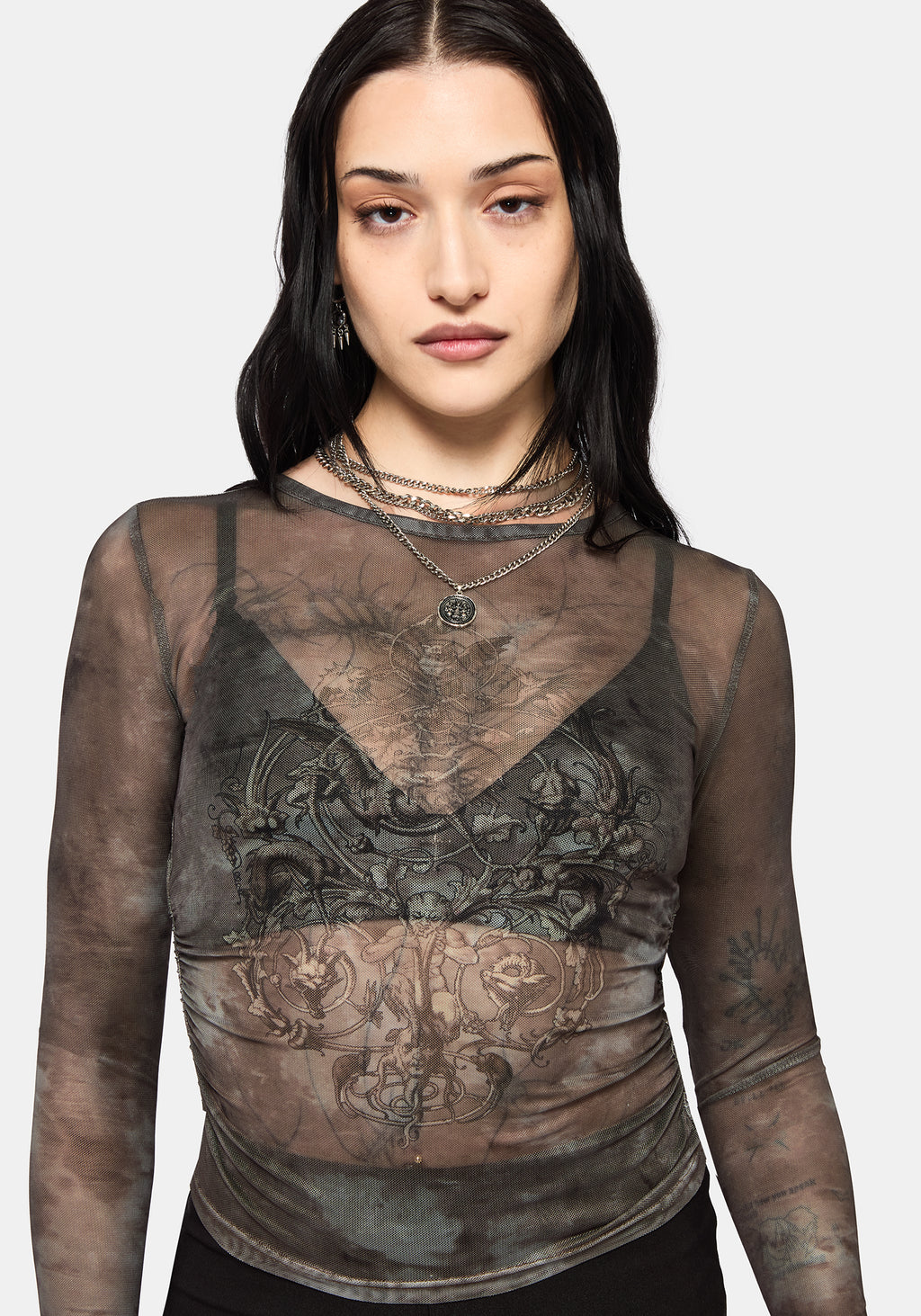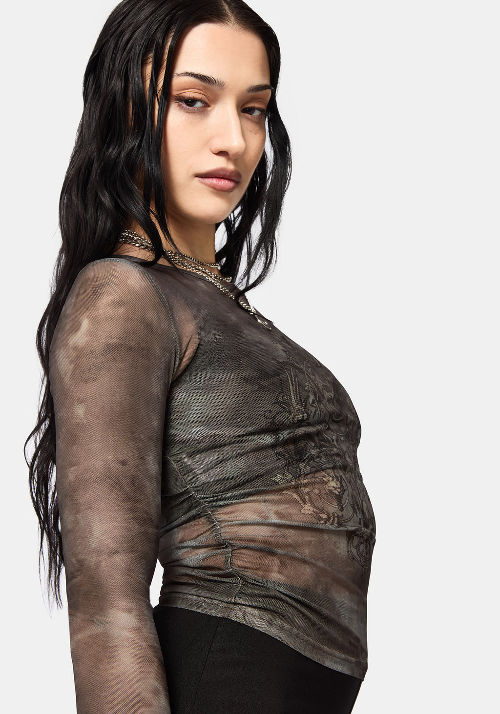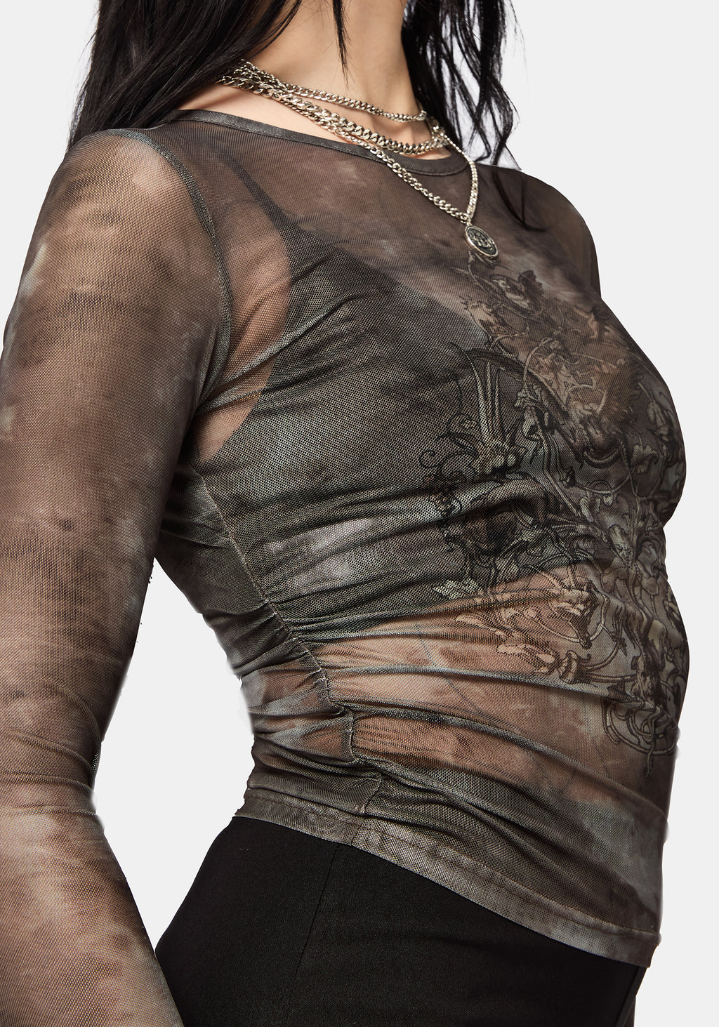 Eros Realm Mesh Long Sleeve Ruche Top