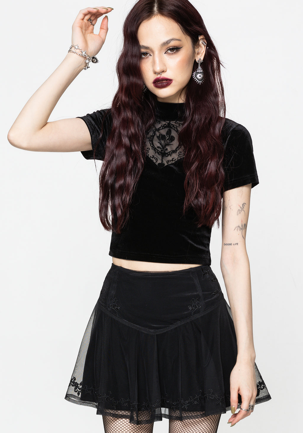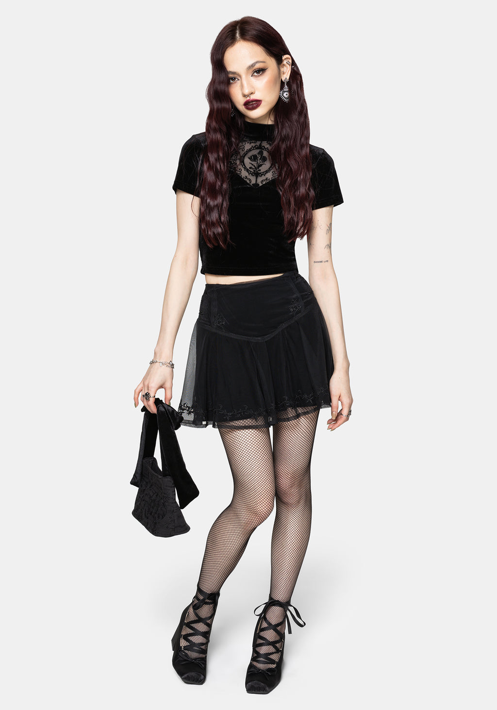 Trixie Velvet Fishnet Embroidered Mini Skirt