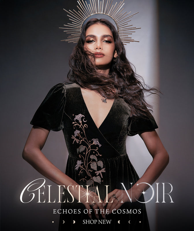 Beneath the gaze of the moon, Celestial Noir awakens. Lace, shimmer, and the soft pull of the lunar tide - this collection is a love letter to the night sky, but most of all to those who find beauty in the dark.