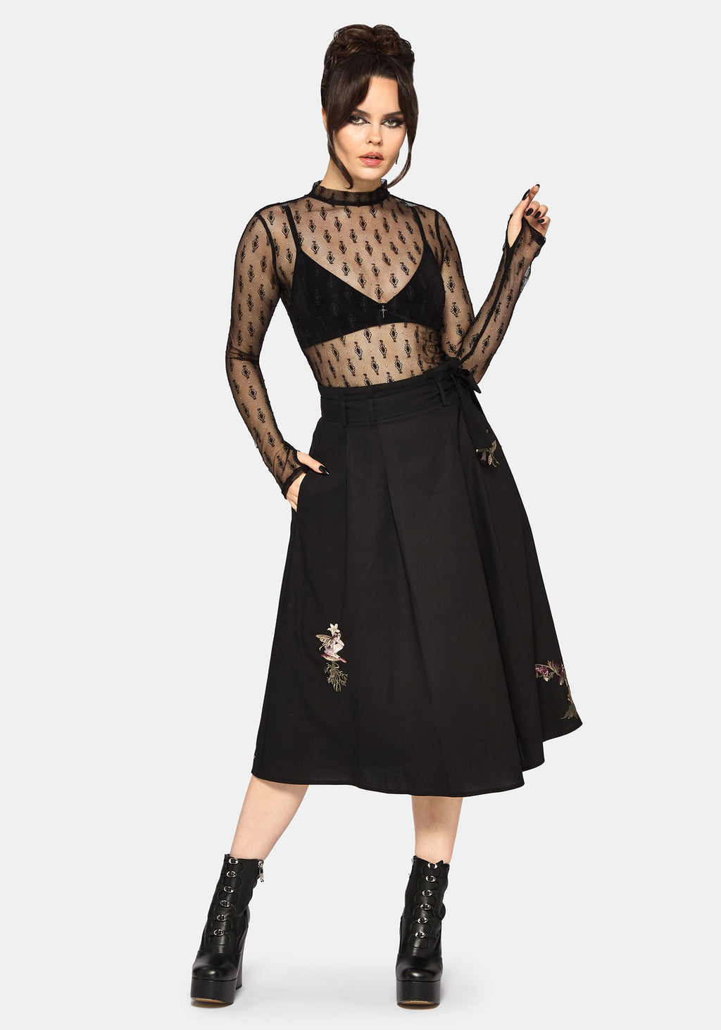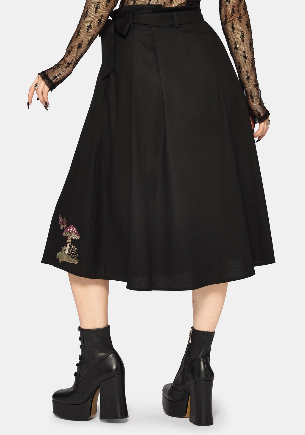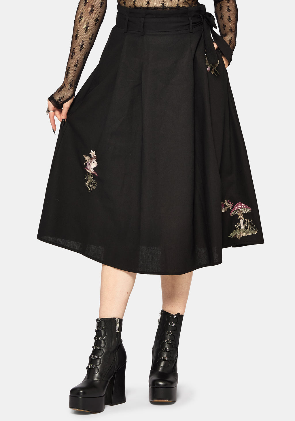 Faela Fairy Embroidered Tie Waist Paperbag Midi Skirt