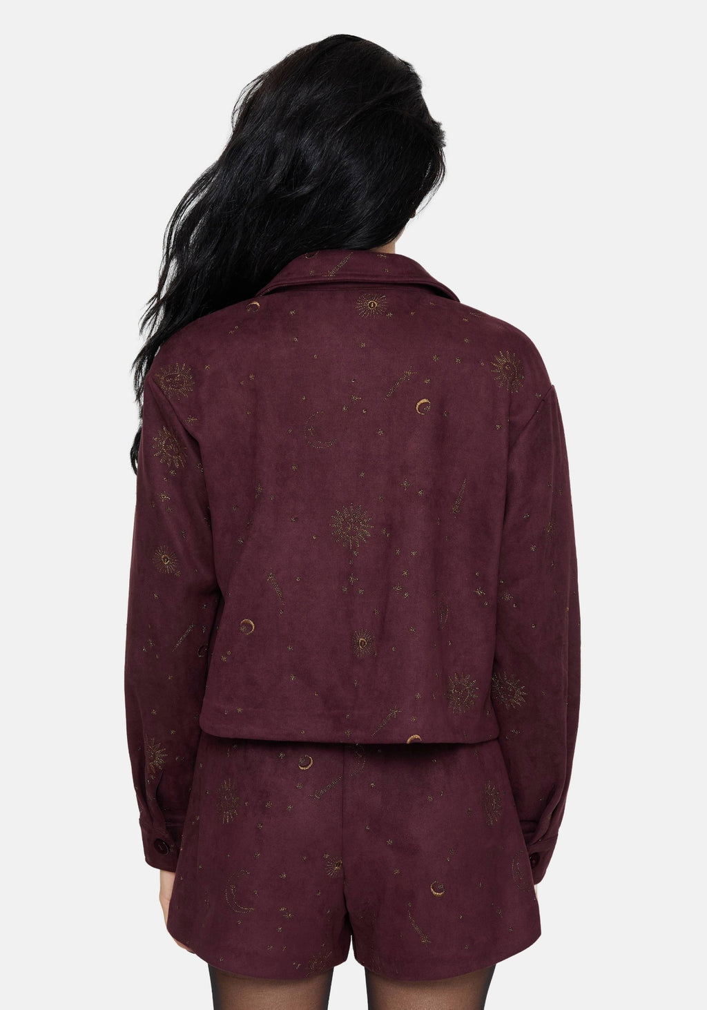 Rosia Celestial Print Suede Cropped Shacket