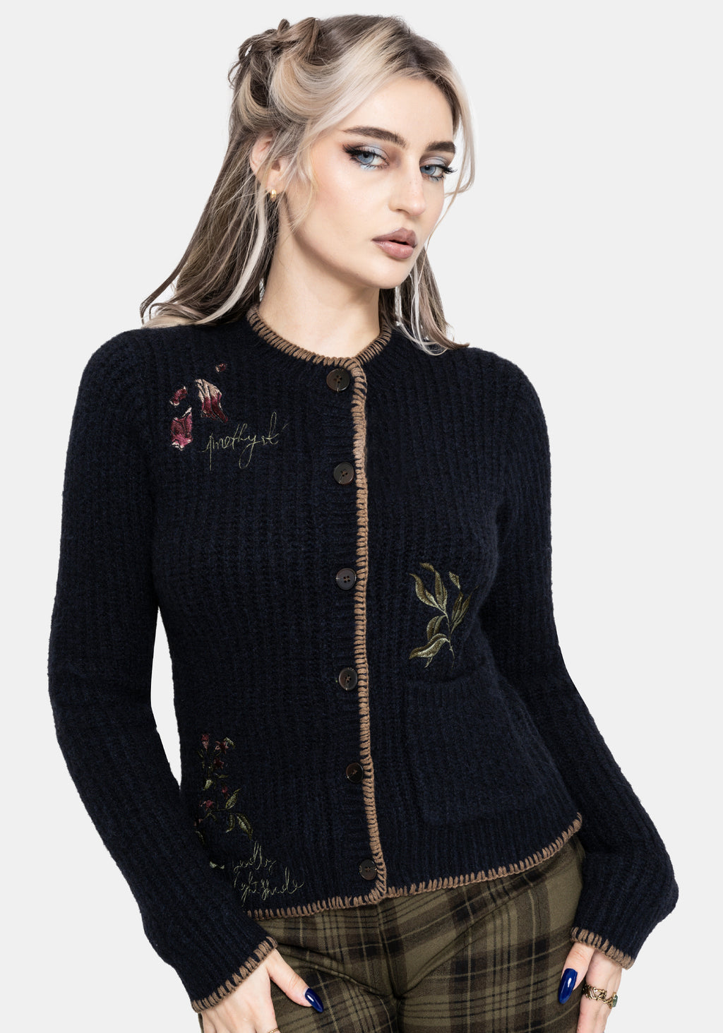 Ame Embroidered Blanket Stitch Cardigan