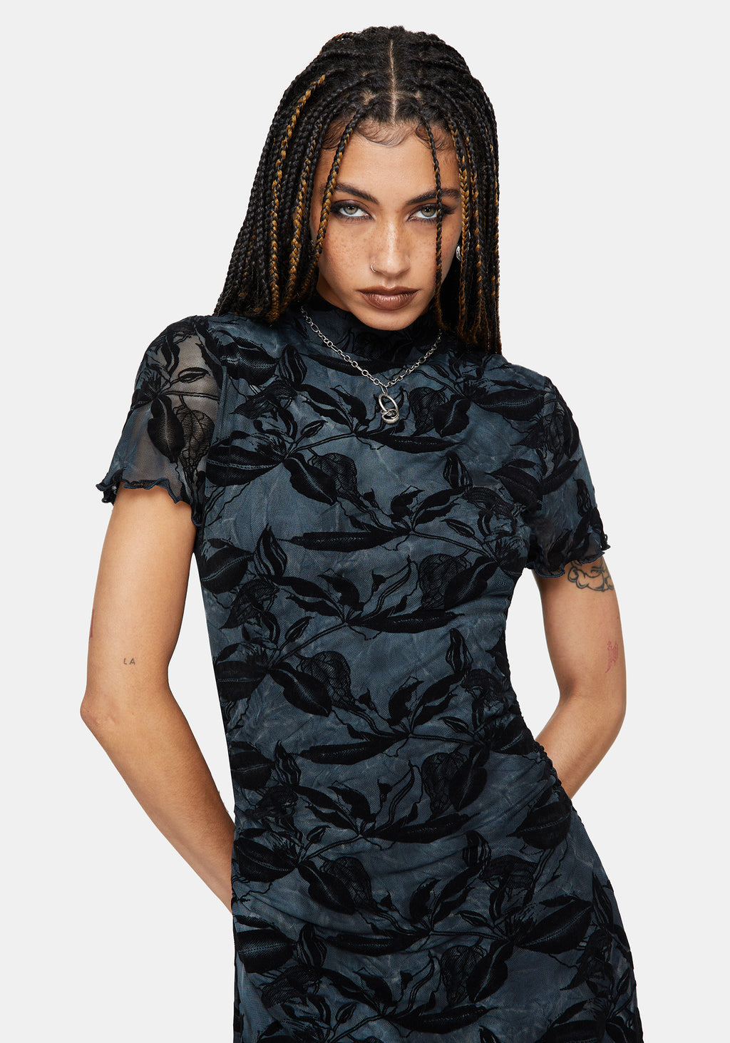 Bryn Floral Flocked Mesh Hanky Hem Mini Dress