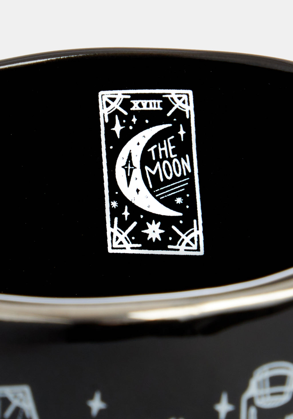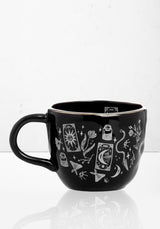 - Black ceramic with a gothic witch illustrated print on side & inner rim