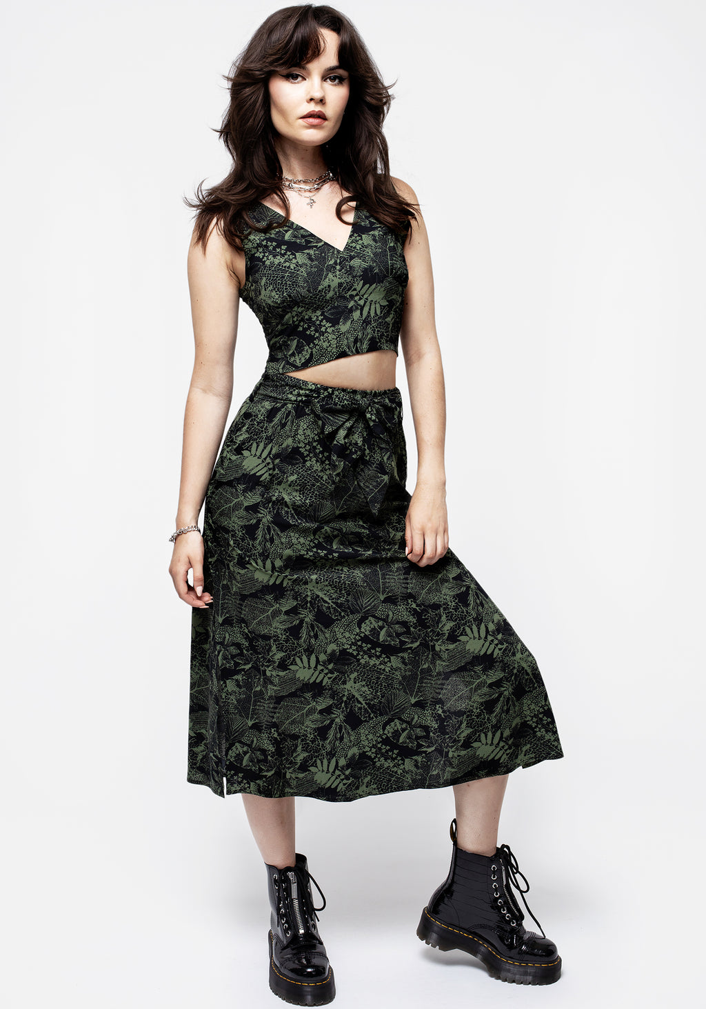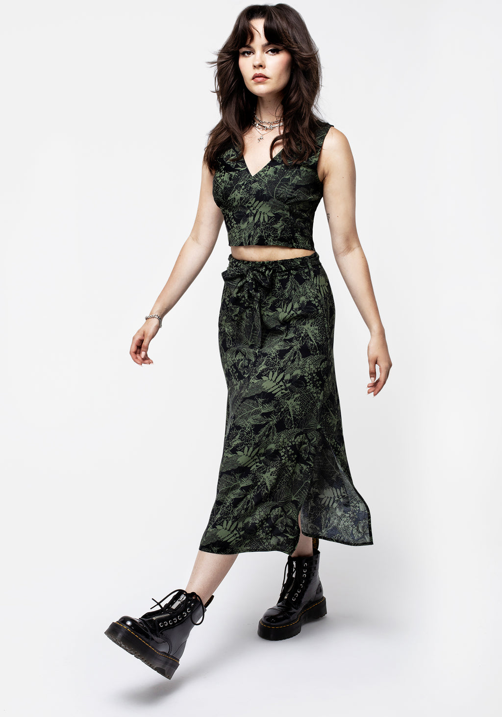 - Self-fabric belt threads through belt loops (tighten & cinch how you wish!)