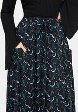 - Vivid, jewel-toned blue, lilac & turquoise moth & moon botanical print
