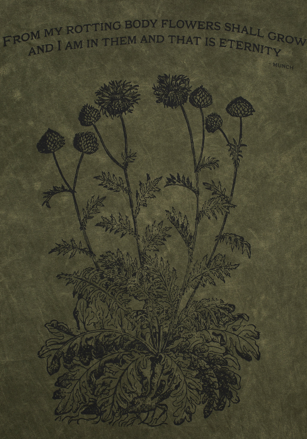 - Black botanical front graphic print features Edvard Munch’s wisest words