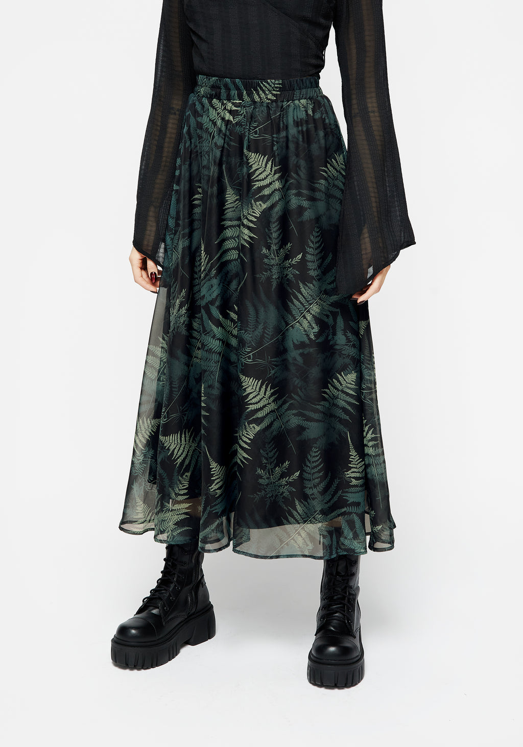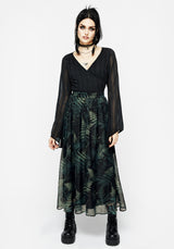 - Black & green fern print chiffon midaxi skirt