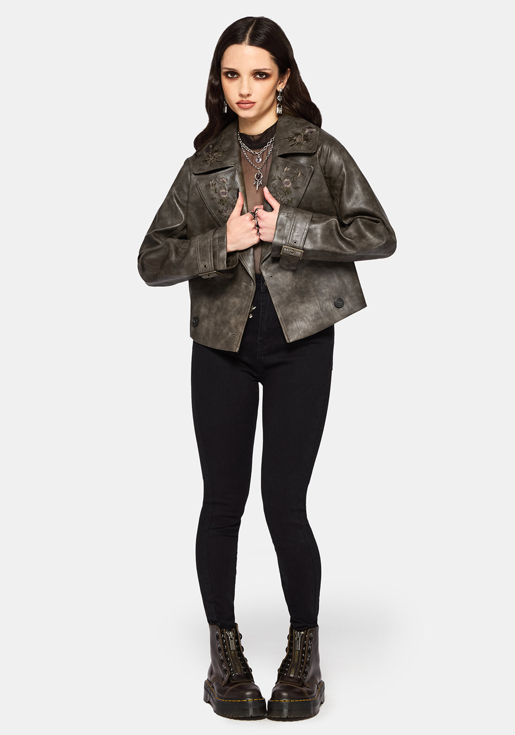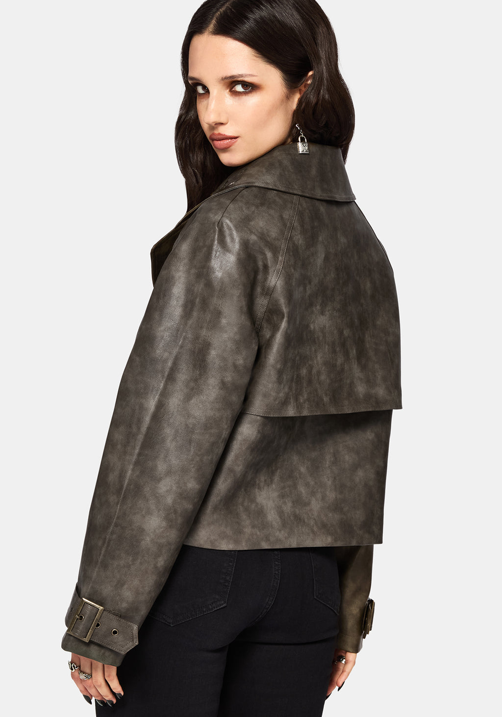 • Brown Cropped Trench Jacket