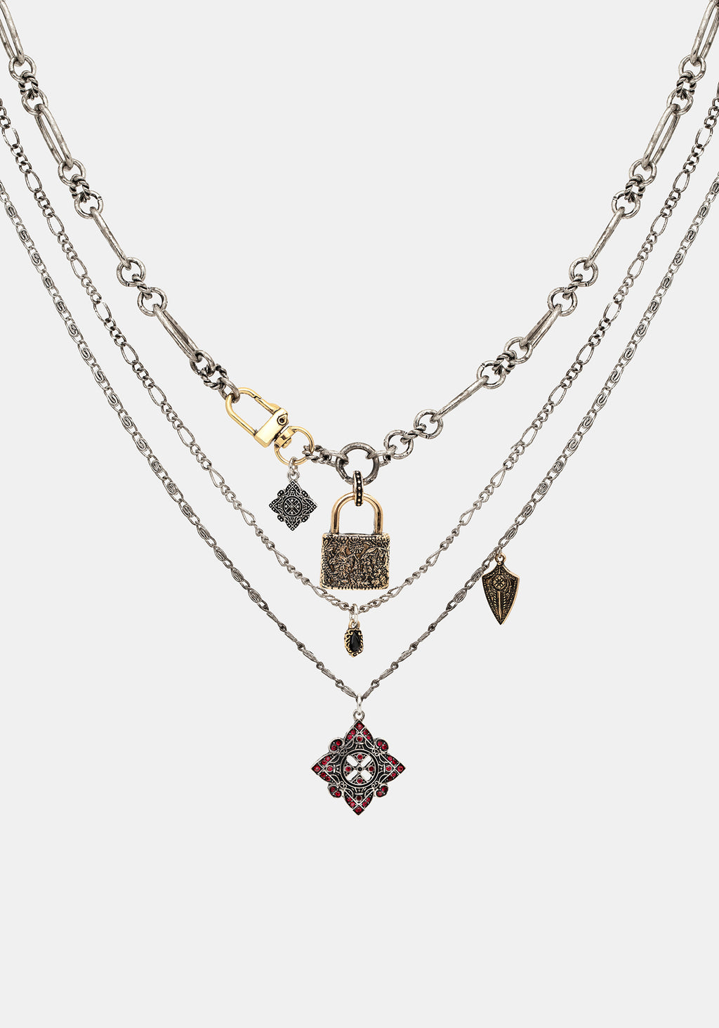 • Silver Charm Layered Necklace
