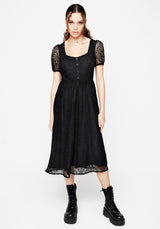 - Squared neckline adorned with non-functional buttons & short sheer puff sleeves