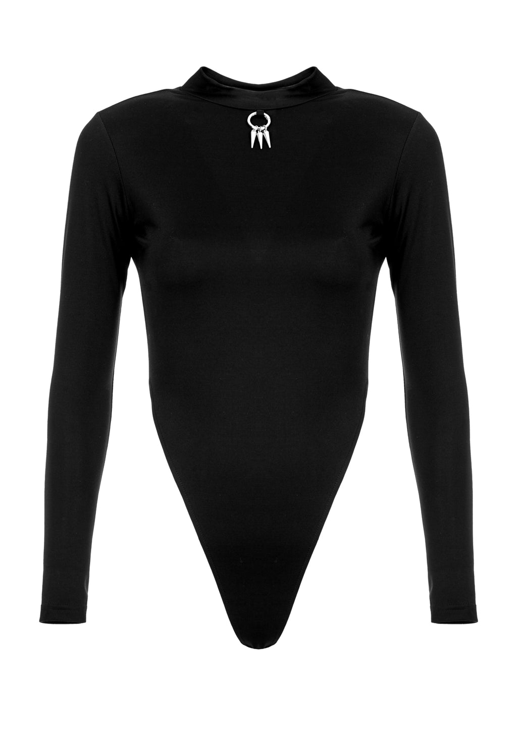 ✷ Ring & spike silver metal hardware at centre-front mock neckline (removable for washing)
