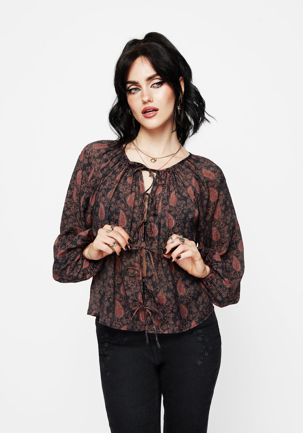 • Red and Black Paisley Blouse