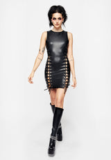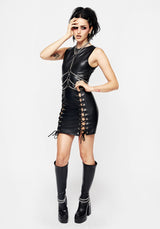 - Clean crew neckline & sleeveless finish compliment mini-length skirt to show some skin