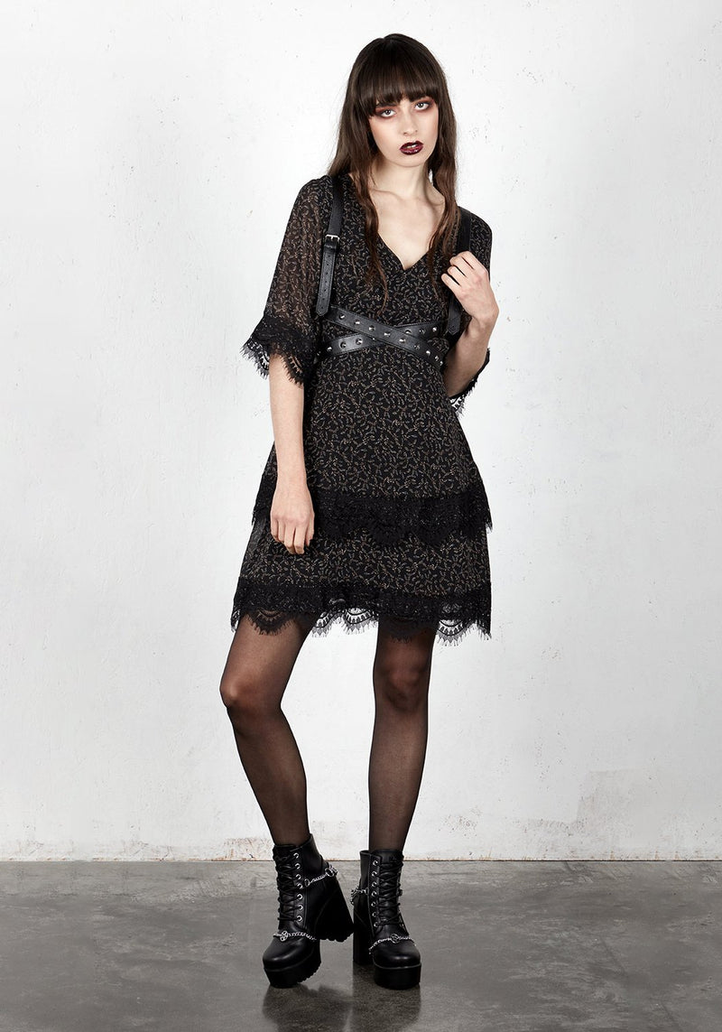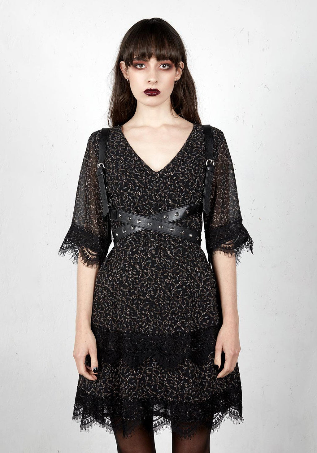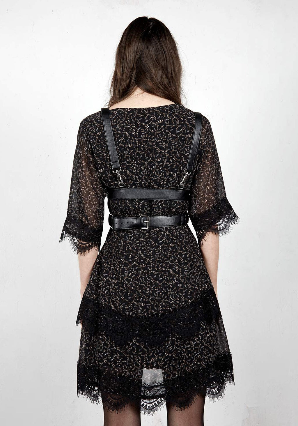 Faux leather studded body harness