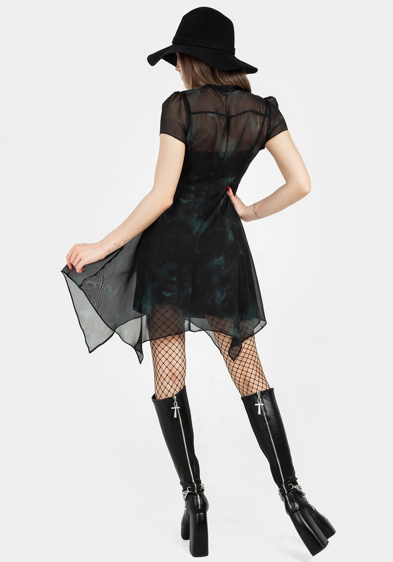 - Green sheer chiffon fabrication with stretch jersey cami slip for coverage