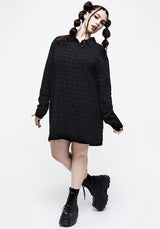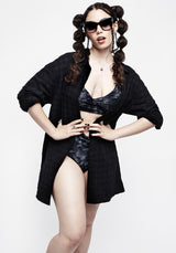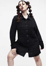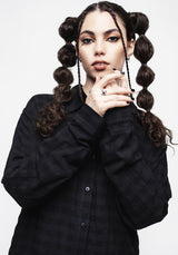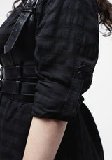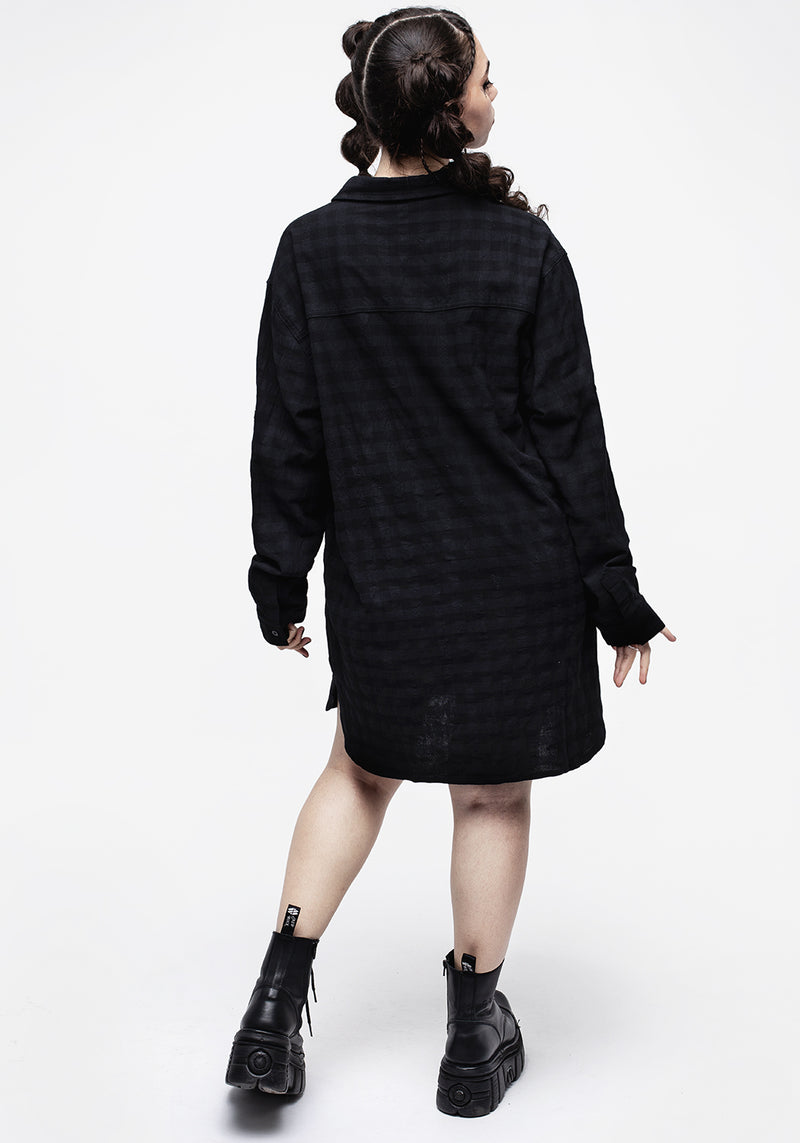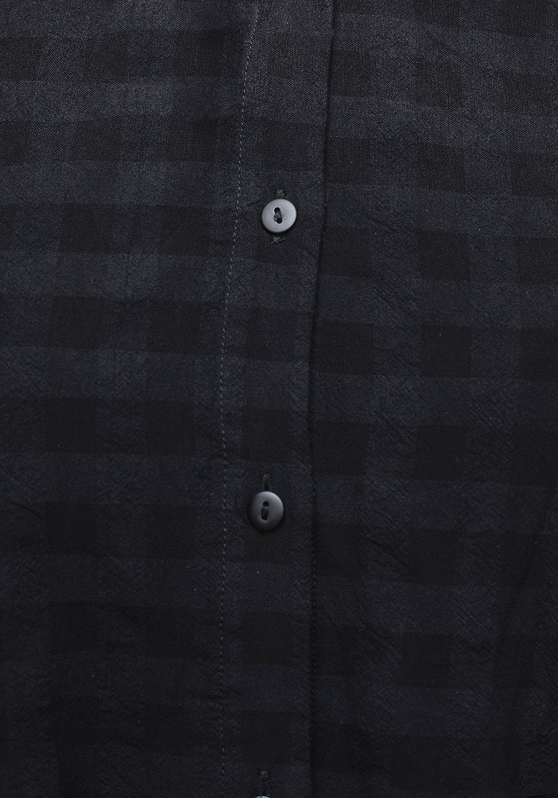 - Sturdy, breathable non-stretch fabrication in a black-on-black gingham weave