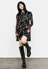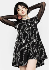 ❦ Black breathable fabric with white love-lock & chain all-over print