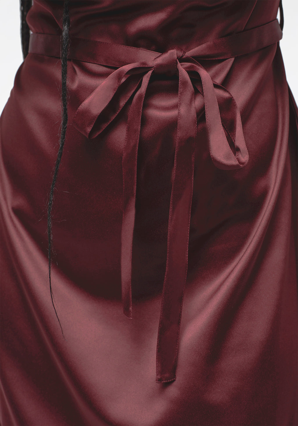 - Self-fabric belt loops through belt loop to tie, cinch, & define