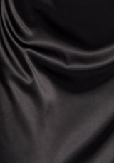 - Comfortable silky black stretch satin fabrication trimmed with lace