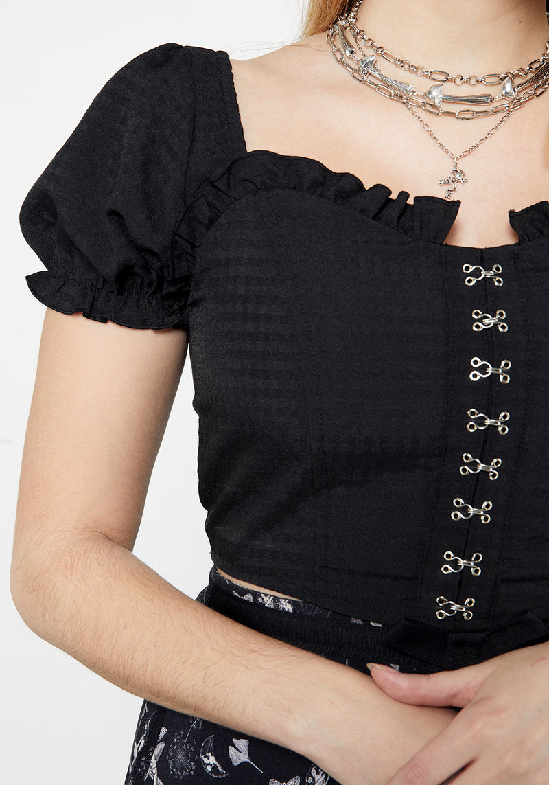 - Dramatic short, puffed sleeves with elasticated hem & added ruffles