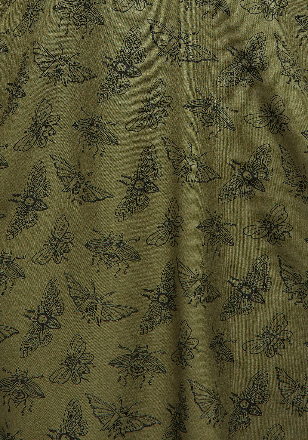 - Silky olive-green woven fabrication (non-stretch & breathable)