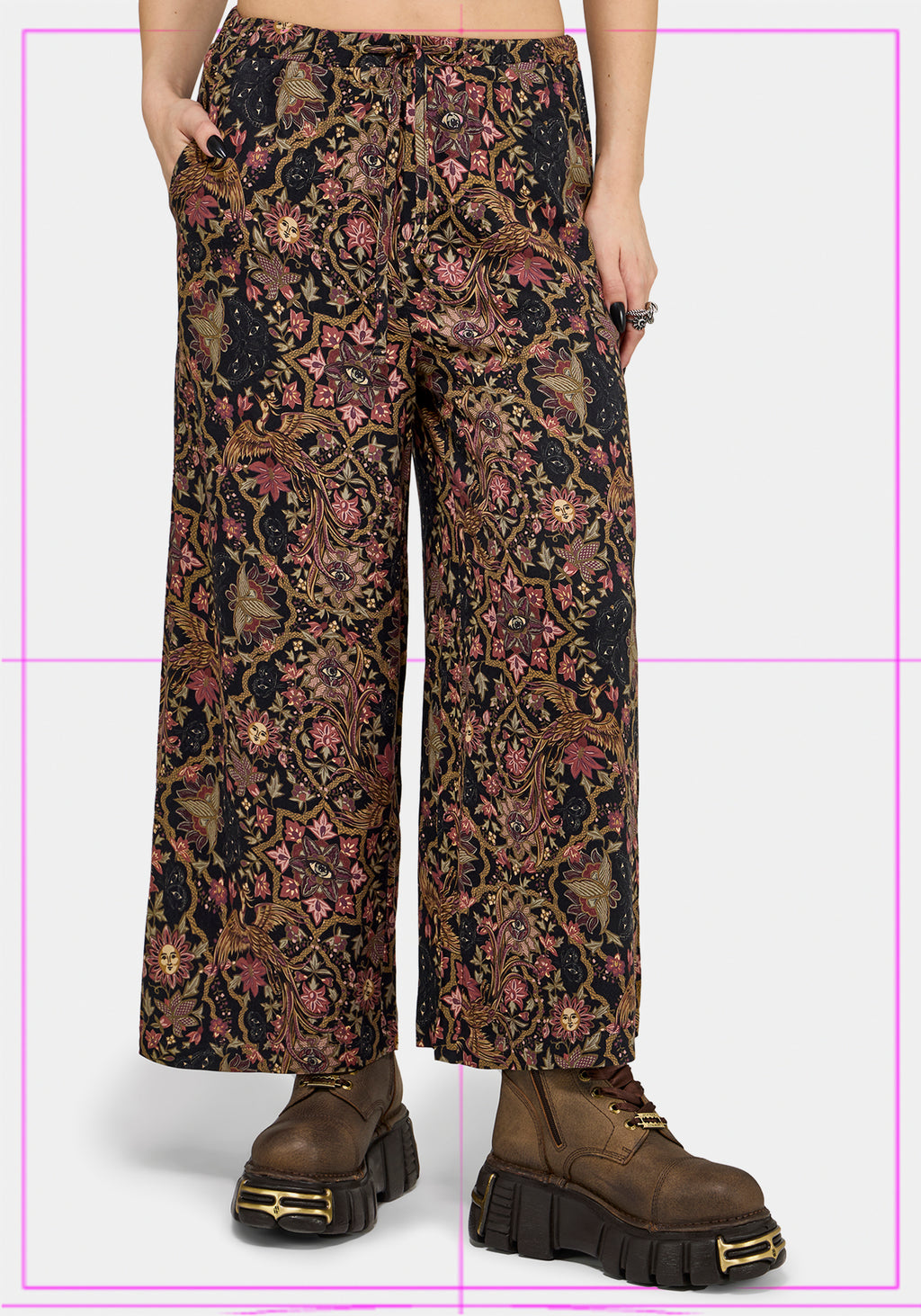• Black and Pink Printed Culottes