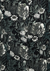 - Moody blue-grey tinged floral moon all-over print on silky, breathable non-stretch fabric