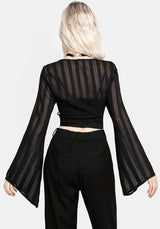 - Black sheer check flare sleeve wrap top