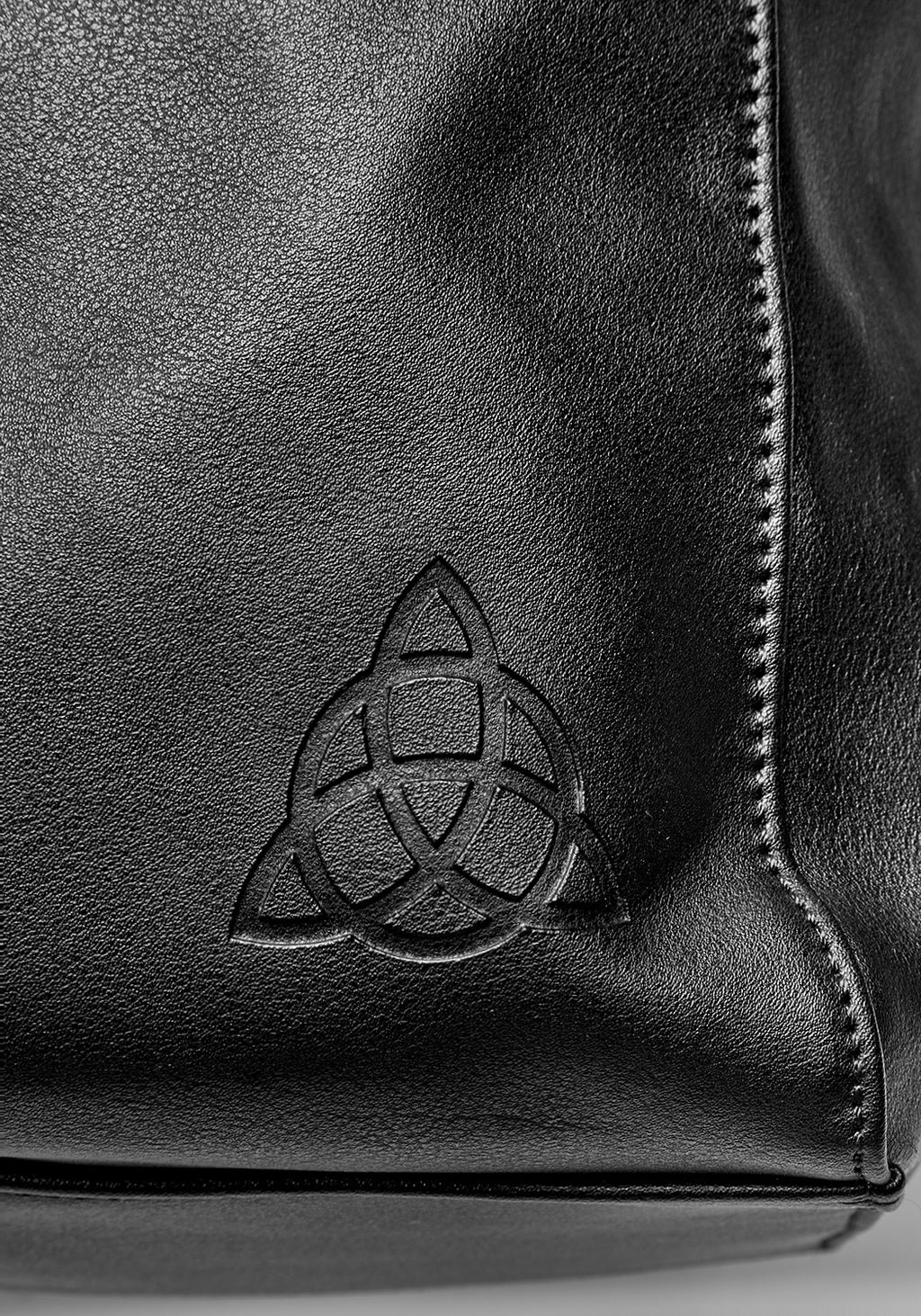 - Spacious front flap pocket with magnetic strap fastening & flat silver rivets