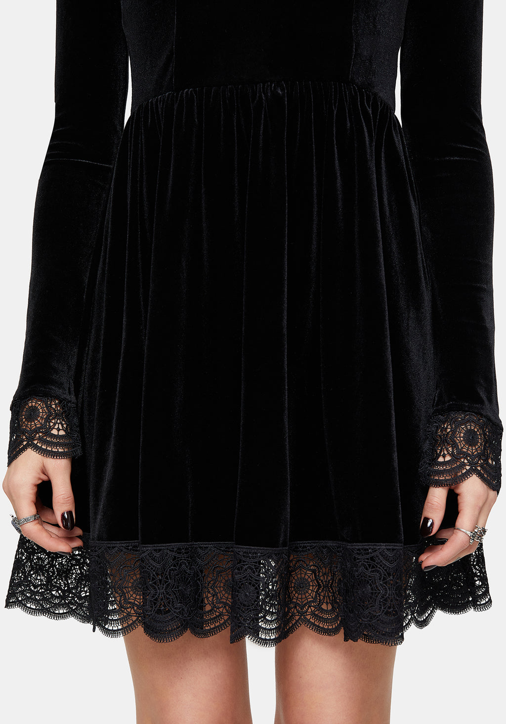Orbweb Long Sleeve Lace Hem Velour Mini Dress