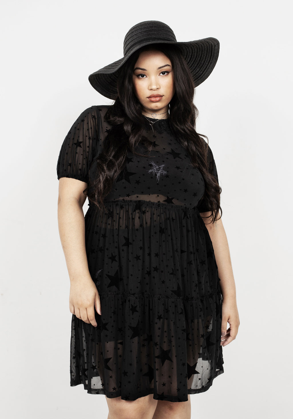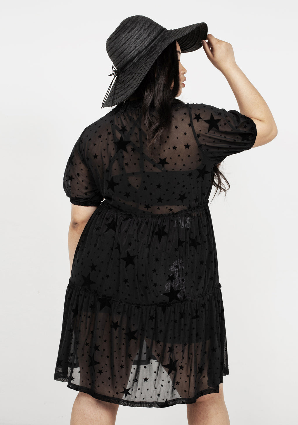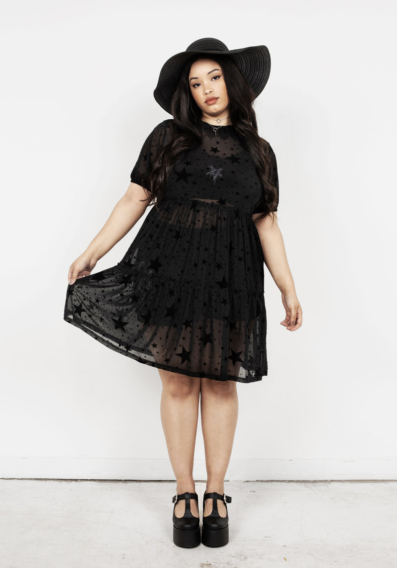 ★ Sheer puff sleeve dress with black stars