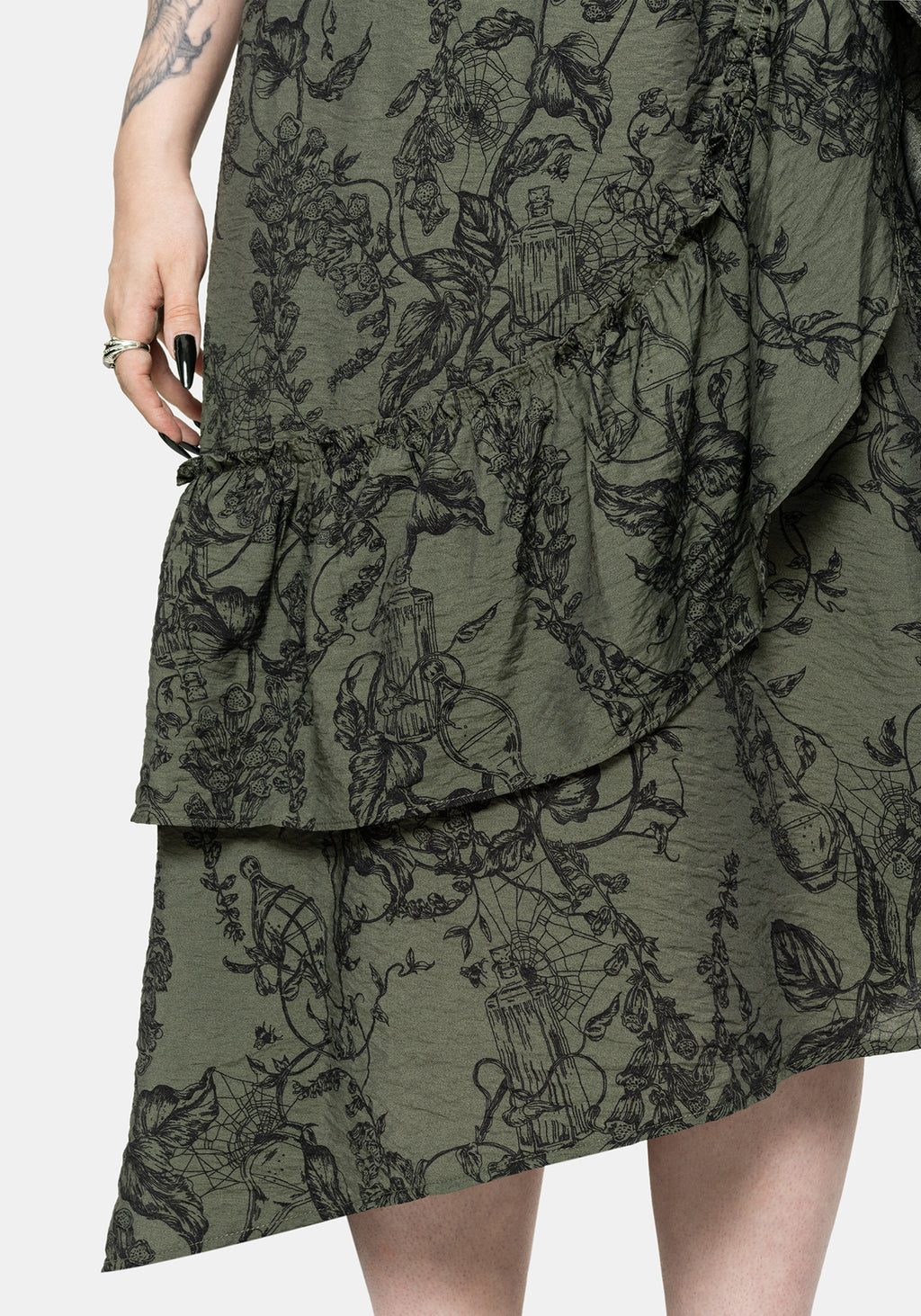 • Green Ruffle Midi Skirt