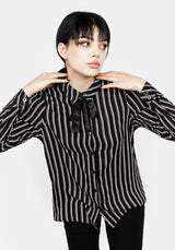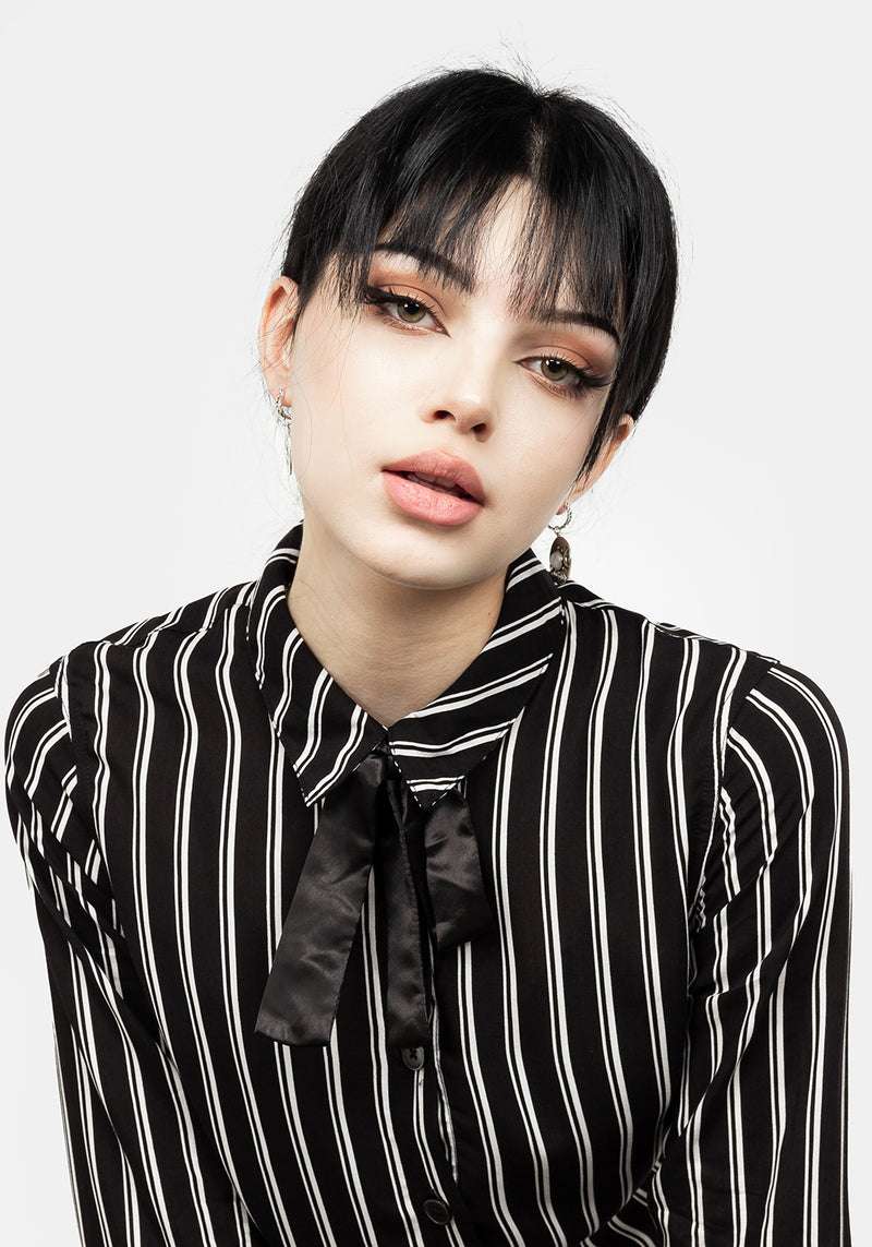 ❦ Stripe collar shirt with black neck tie