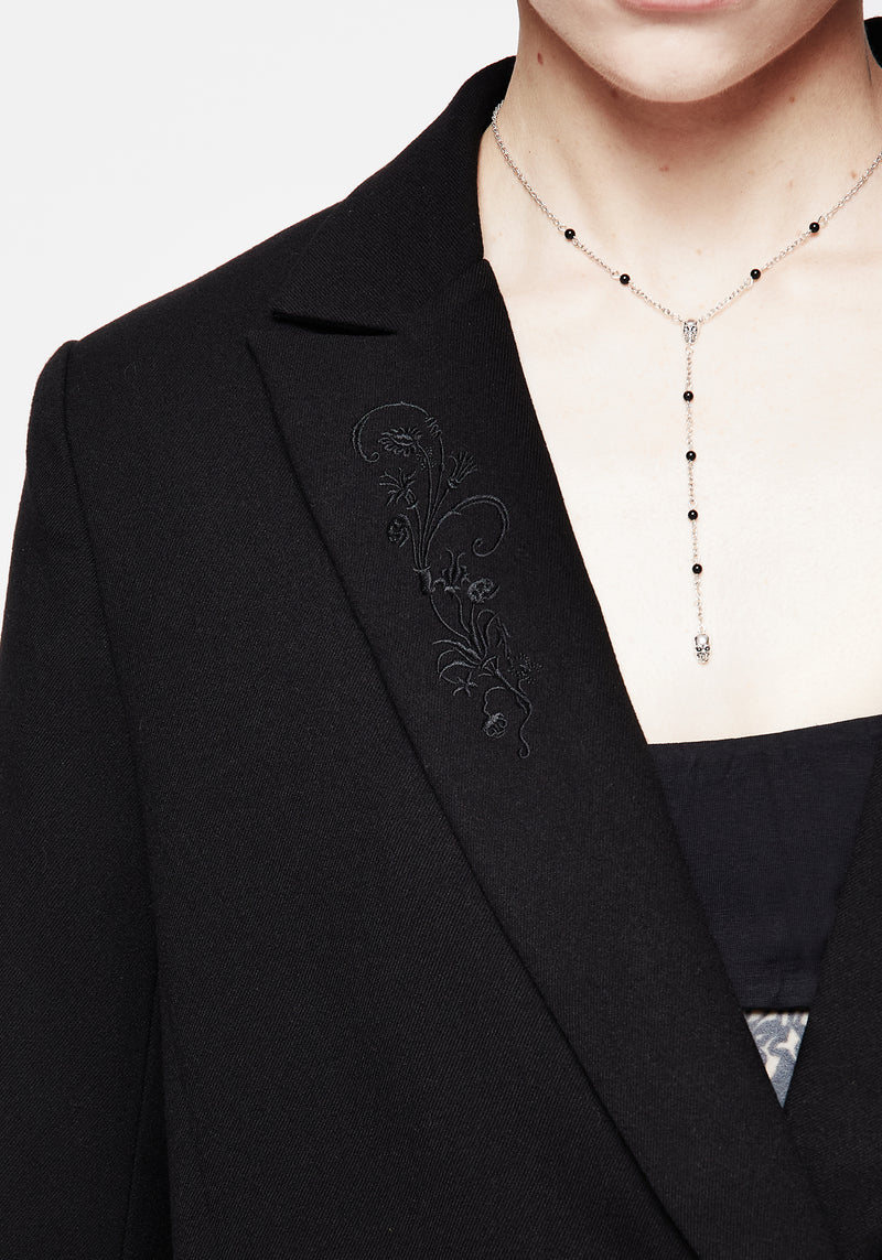 - Black embroidered oversized blazer