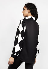 ✹ Harlequin black & white print on collar & sleeves