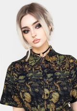 - Green foliate head print midi shirt dress