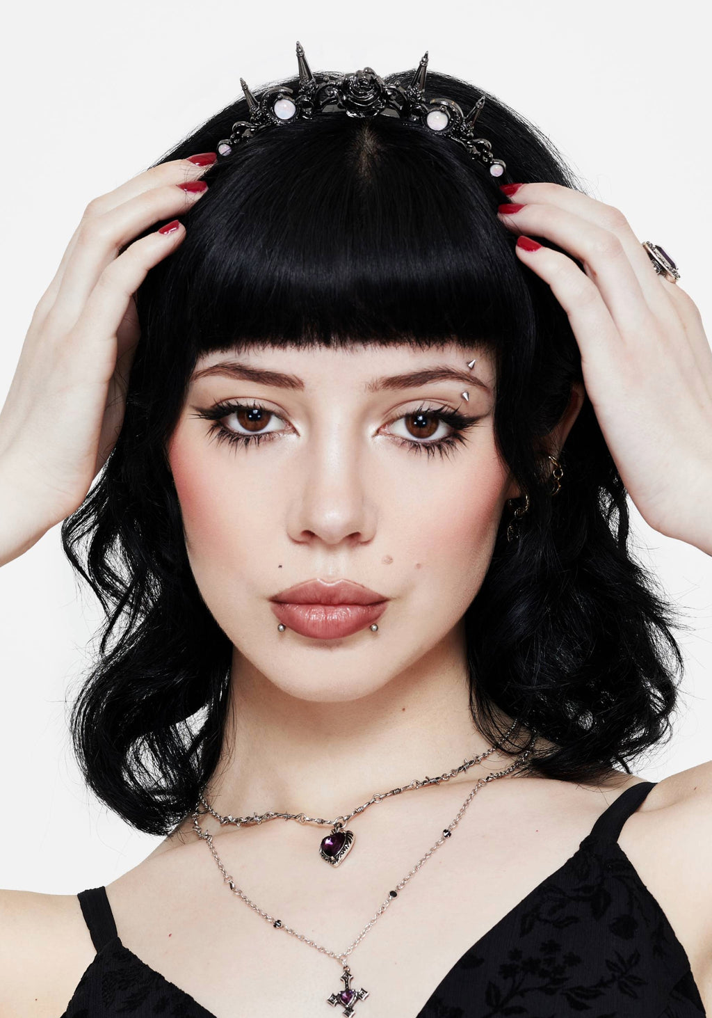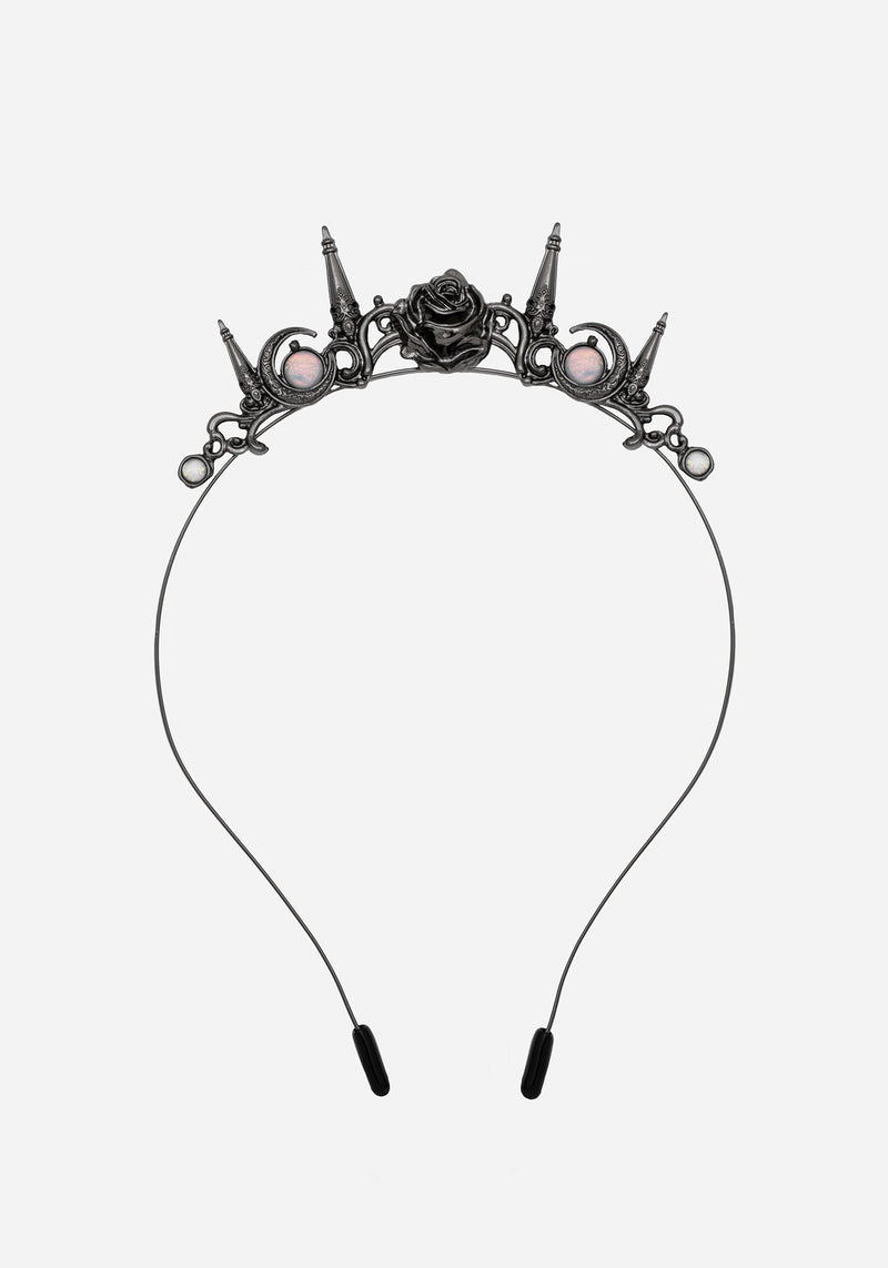 • Gunmetal Black Rose, Dagger & Moonstone Headband