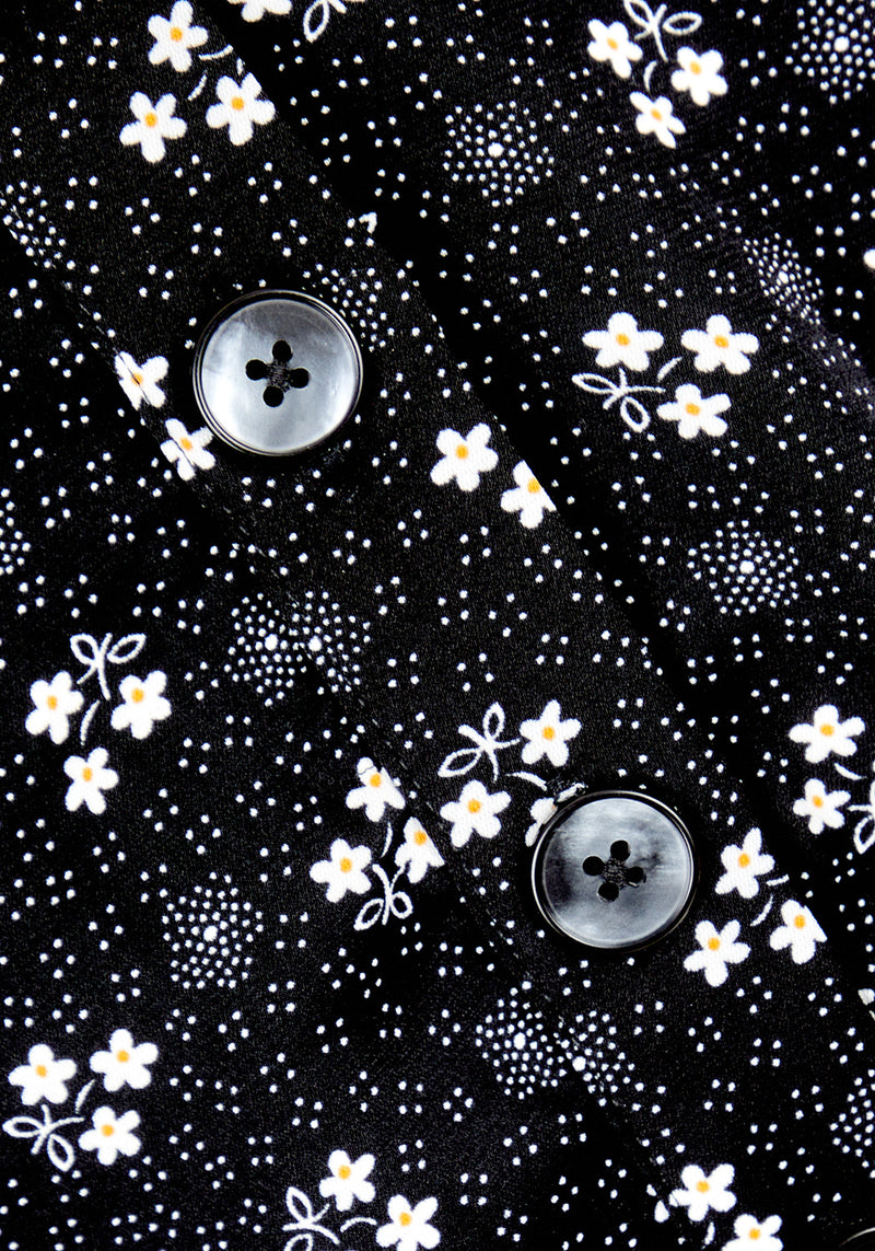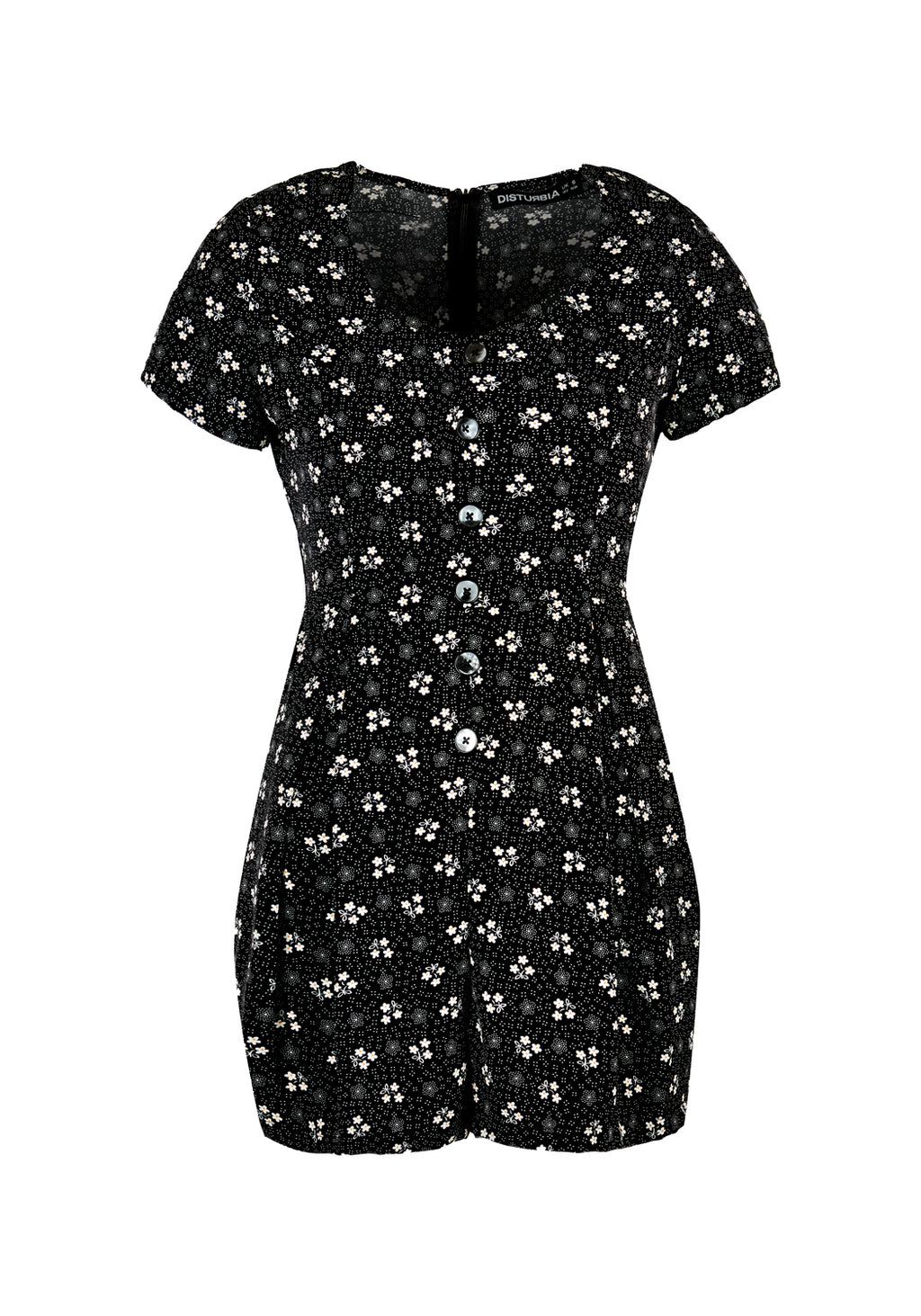 ✦ Floral print playsuit with decorative button detail